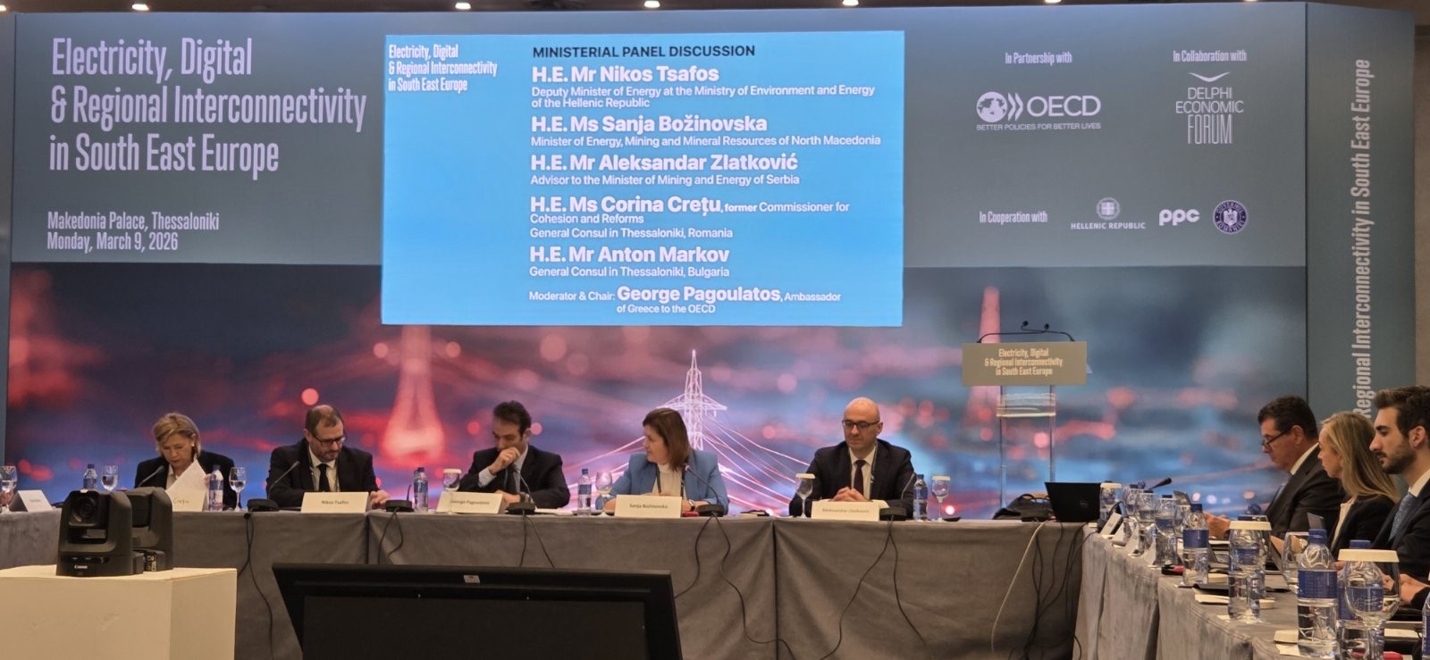 Министерката за енергетика, рударство и минерални суровини Сања Божиновска учествуваше и се обрати на министерскиот панел на високиот настан „Electricity, Digital and Regional Interconnectivity in South East Europe“, кој се одржа во Солун, Република Грција, со што официјално беше започнат новиот проект на ОЕЦД за унапредување на електроенергетската поврзаност, дигитализацијата и регионалната соработка во Југоисточна Европа.