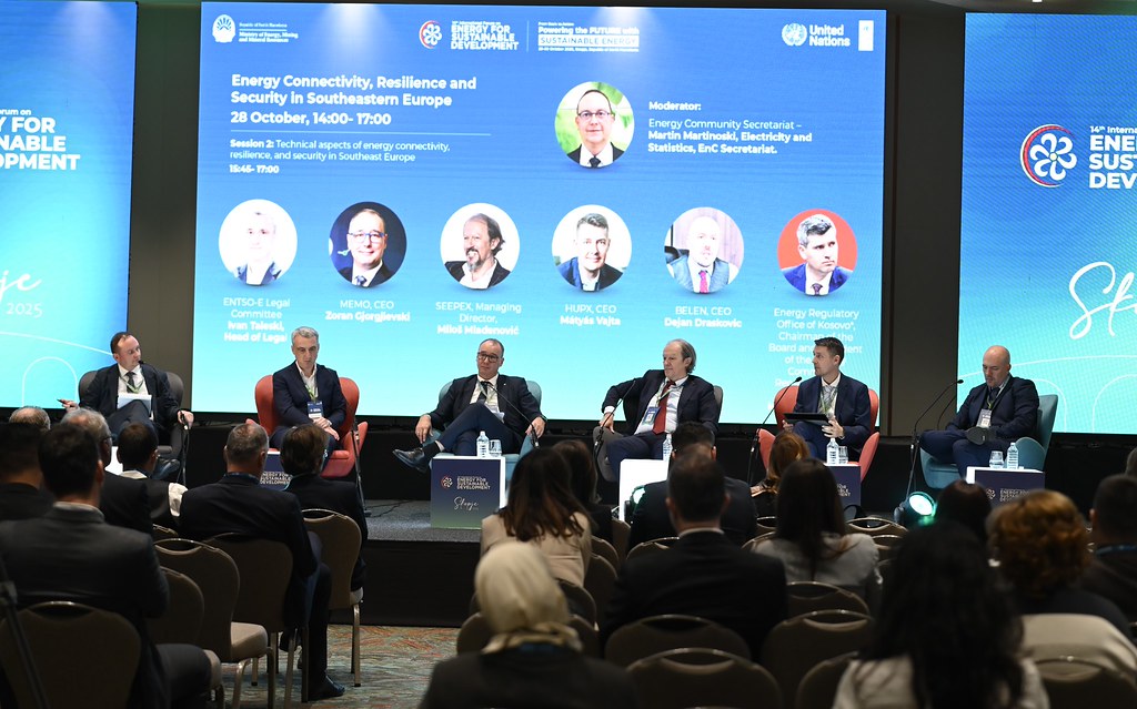 Скопје. 29 октомври 2025 – На панел-сесијата „Енергетска поврзаност, отпорност и безбедност: регулаторни и правни аспекти“, во рамки на 14. Меѓународен форум за енергија за одржлив развој (14-IFESD), која ја модерираше Мартин Мартиновски – експерт за електрична енергија и статистика во Енергетската заедница, говореше управителот на Националниот оператор на пазар на електрична енергија, МЕМО ДООЕЛ Скопје, Зоран Ѓорѓиевски, заедно со колеги од регионот, управители на берзите за електрична енергија на Унгарија, Србија и Црна Гора, како и претставници на регулаторни тела.